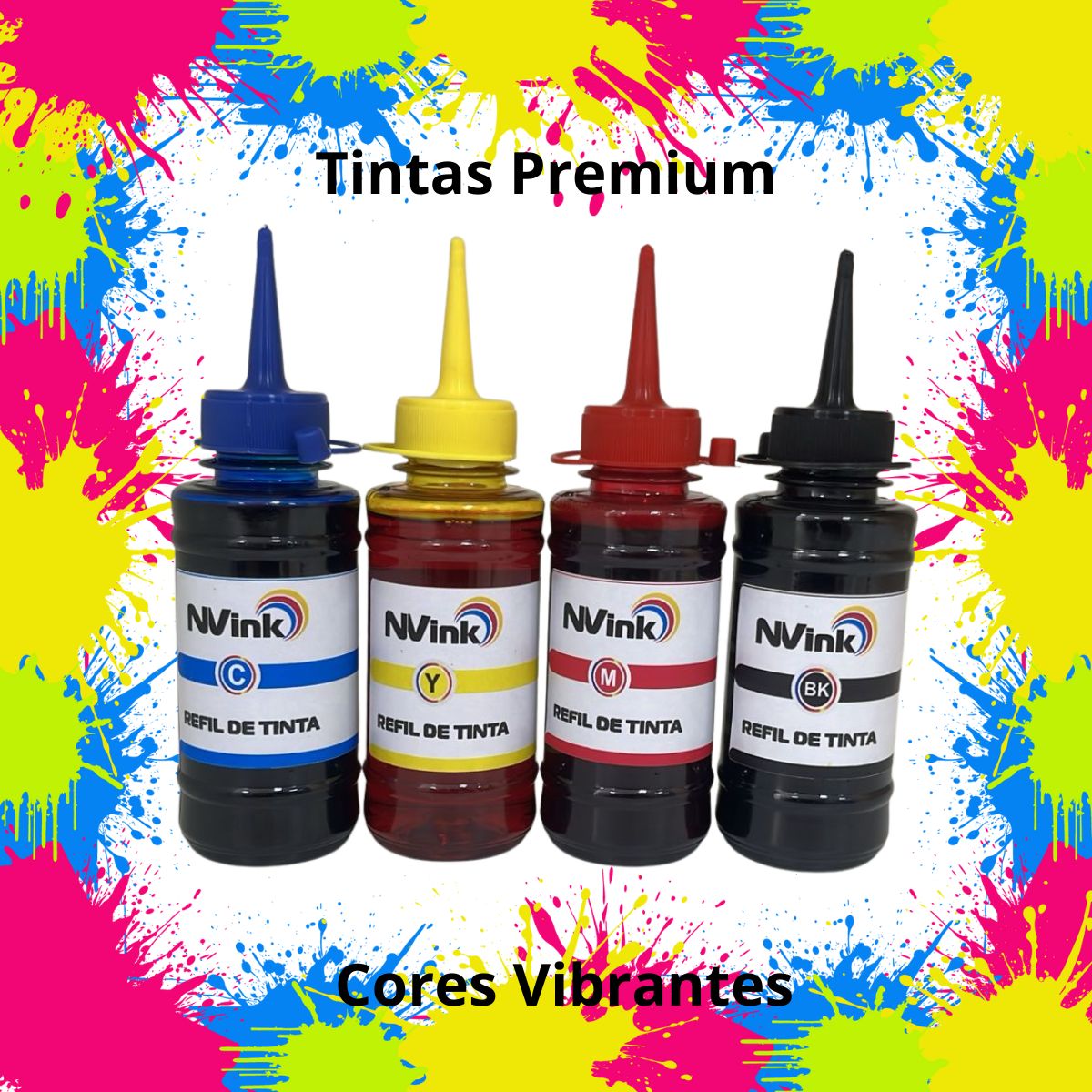 04 Garrafas de Tinta Corante Específica Compatível para impressoras Epson citadas acima;